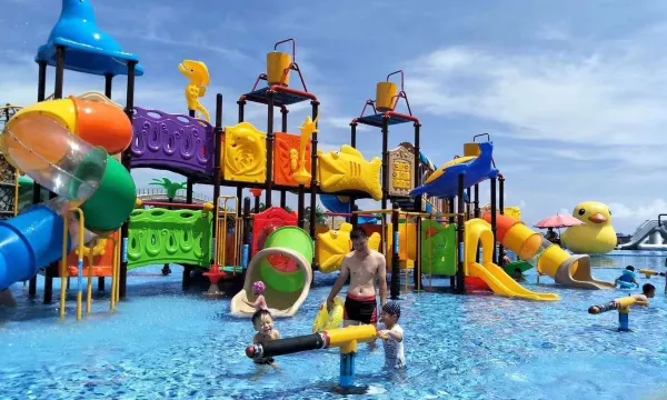 Yangjiang ocean age Resort Apartment is located on the central coastline in the south of Hailing Island, about 7 kilometers east of the famous tourist scenic spot dajiaowan tourist scenic spot and Nanhai No. 1 Museum. With charming island scenery. There are all kinds of scenic spots, specialty snack streets, banks, supermarkets, restaurants and local specialty shops around the apartment. You can put aside the busy and tense urban life and fully experience the authentic island life. The downstairs of the apartment is the crystal lake, with an area of 50000 m2. It is equipped with seawater, fresh water swimming pool and beach, as well as an interesting water park, which brings you a refreshing vacation experience. The apartment is decorated luxuriously and the guest rooms are fashionable and elegant. It not only advocates the natural style and is fresh and comfortable, but also is equipped with complete equipment such as independent bath room, open kitchen, refrigerator and washing machine of luxury apartment hotel, which gives you a warm feeling at home. Each room of the apartment can have a panoramic view of the silver beach coast. New equipment such as variable frequency air conditioning, 24h hot water supply, LCD TV, wireless network (WiFi), warm and comfortable family service, luxurious and beautiful architectural style, and the silver beach coast of coconut wind sands are the ideal choice for you to stay and travel in Yangjiang Hailing Island.