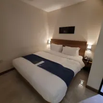 The room was spacious and the bed was big, which was nice. There was even a sofa, so it was comfortable. The surroundings were quiet, which was nice. There was a restaurant nearby, so you could go out and eat.