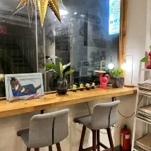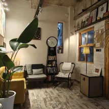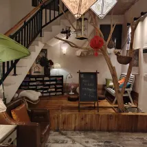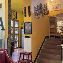 We stayed in a loft room, which my daughter absolutely loved! Upstairs, there was a very spacious bed, and downstairs, the sofa could easily convert into another bed. The guesthouse's atmosphere was a major highlight – it had a cool, nostalgic bar feel. From the rooftop balcony, we enjoyed stunning sunrises, sunsets, and views of the distant mountains. The owner was also fantastic, going out of their way to help us arrange a car rental. Much appreciated!