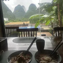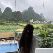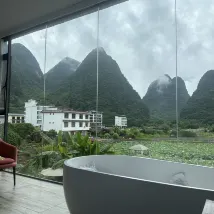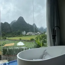 The view from the room window is simply incredible 😍 The staff is very polite and helpful, pleasant. The room has all the amenities, a swimming pool. Breakfast is included (they offer to try Guilin rice noodles) Nearby (10 minutes walk) there is bamboo rafting on the river. I highly recommend this hotel!!!