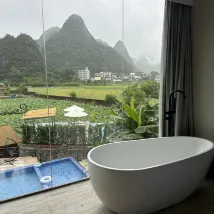 Response from Property: [Panoramic Floor-to-ceiling Windows] [Influencer Check-in] [Convenient Travel] Thank you for choosing us and supporting us! Located in the heart of the Yulong River, all rooms offer direct views of the Yangshuo mountains, and the lotus blossoms sway gracefully in the breeze. Rooms are equipped with bathtubs with views, water purifiers, and air fresheners, ensuring you a truly authentic vacation amidst the countryside. With an infinity pool downstairs and a sky mirror upstairs, every photo is a beautiful one. Gongxingshe Yushe upholds the service philosophy of treating guests like family. We thoughtfully prepare a nutritious buffet breakfast, a hearty afternoon tea, and seasonal fruits for you. We hope that comfort and happiness will remain your standard when we meet again, and that the beautiful scenery of the sky mirror and the warmth of family will create a wonderful memory for you! We look forward to seeing you again and wish you a happy life!