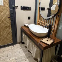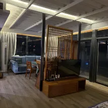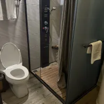 However, the cleanliness wasn't terrible, just average. The room had so many elements that it was impossible to clean them all. The shower was very narrow and covered with a sheet. After two people showered, it leaked outside. 😂 The air conditioning was adequate, and it dried up the next day.