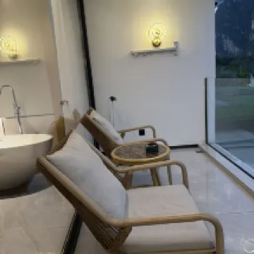 What impressed me most was the impeccable service. From helping with luggage to prompt room service, every staff member greeted us with a smile, making us feel incredibly warm and truly at home. The hotel's cleanliness was flawless; I could walk barefoot in the room without a speck of dust. The bathroom was spotless, and the towels were fluffy and soft. As someone with a germ phobia, I felt completely at ease. The mattress was just right – not too soft, not too firm – and the value for money was exceptional! To enjoy such high-quality rooms, facilities, and service at this price point is truly a steal. Whether it was the comfort of the bedding, the water pressure in the shower, or the fragrance in the common areas, everything met five-star hotel standards. I highly recommend it to friends on a budget who still seek quality. It's a prime example of a resort hotel, boasting a spacious outdoor pool and beautifully maintained gardens. The guest room balcony offered expansive views of stunning mountain scenery. The activity schedule was rich, with options like feeding alpacas, goats, and deer, and even fishing – a truly full and immersive experience.