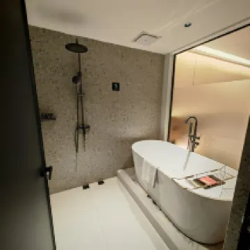 The young man at the front desk was very enthusiastic. He gave a detailed introduction to the hotel's environment and upgraded our room for free to a bigger and more spacious one. The rooftop restaurant has a very creative design, and the views from there are beautiful. The only downsides were that there wasn't a surface to put luggage on, and the bidet's spray function wasn't working. The breakfast selection was sufficient to fill us up. Overall, it was still quite good.