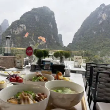 The hotel is right next to the Yulong River, with views of the Ten-Mile Gallery from the moment you open your window. The rooms have balconies, offering excellent views. The authentic Guilin cuisine at the rooftop restaurant is fantastic, and breakfast is incredibly rich and varied. Bringing your family here guarantees a wonderful, happy time! 💕