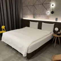 The bed is big and comfortable. The only downside is that the refrigerator is shared with others outside, which is a little inconvenient. The parking lot is outside, but it is very close to the hotel. The breakfast has few styles but a lot of vegetables. I like it.