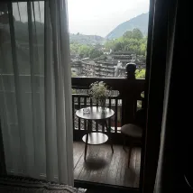 The hotel located near Furongzhen waterfall, and I got room upgrade to see the river view. The hotel also provide 1 ride to pick up at high speed train station and special ticket price to Furongzhen 80 yuan per person. Breakfast is local dish (noodle/wonton/bun/boiled egg and boiled rice. The owner is nice and willing to communicate by we chat or Trip message.