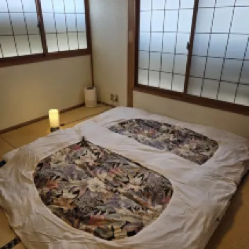 The staff is very friendly and the service is top-notch. The breakfast is simple and delicious, and it really feels like home. The bathroom we used was a bit small, but it had everything we needed and we were able to have a comfortable bath. It was too cold that night to go to the open air soup which was a shame. The point is that it is open all night, which surprised me a little. There is a large room for 4 people and a kotatsu table! It looks like Chibi Maruko's home.