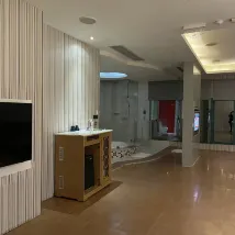 road. I was traveling with a big suitcase and there was no elevator to go up. The place is very spacious, but it is not suitable for a family to stay. The location is not in the city center. You can only take a taxi to get in and out. The house is really big and suitable for couples to stay in. It is well-equipped and has a large massage pool in the room. If you are not a couple, it is a bit awkward to go to the toilet, which is open and has no partitions, and the shower is also made of transparent glass. The only advantage is that the bathroom can be used as a sauna.
