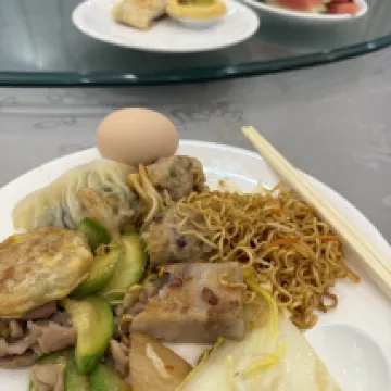 The hotel's location is convenient, not far from Seven Star Crags. The rooms are well-equipped with amenities like a mini-fridge and a weight scale. The shower pressure and temperature are great, and the bathroom has a separate wet and dry area. The hotel also features a gym and a laundry room. The Cantonese dim sum for breakfast is exquisitely made and tastes delicious.
