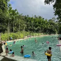 The environment is beautiful and comfortable. You feel like you are in nature. You can go boating and swim. The swimming pool with mountain spring water is really great. The children don't want to leave after playing there.