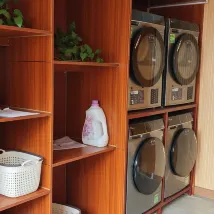 I really liked the hotel's decor; it had a retro style. The hotel also had a self-service laundry room with a dryer, which was very convenient. The receptionists were also very friendly and patiently answered all our questions.