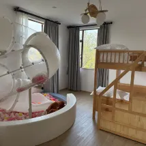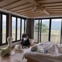 Take into consideration you’ll have to ride a car or order a Didi to go everywhere. There are no shops nearby, as it’s located next to an old town, with only houses and rice fields.