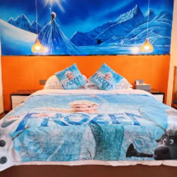 As soon as you open the door, it's filled with ice-blue Elsa elements: soft and cuddly Elsa dolls, a dreamy little tent, and delicate Elsa murals on the walls. Even the smallest details exude a fairytale vibe. My daughter shrieked with joy the moment she walked in, hugging a doll and playing hide-and-seek in the tent. The room was clean and tidy, and the bedding was comfortable and skin-friendly, making our stay with the child super reassuring.