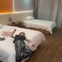 As a family, we booked the duplex room, which was exactly as described. The environment was clean and tidy, and all amenities were well-provided. Its location was easy to find, and having a food street right behind the hotel made dining, late-night snacks, and shopping incredibly convenient. Chimelong is also just a few minutes' drive away. The front desk staff were exceptionally friendly and even provided us with complimentary breakfast. This hotel offers great value for money and is highly recommended for family trips!
