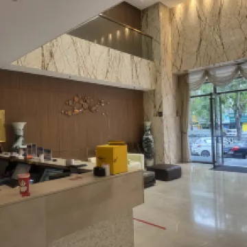 The hotel environment is really good. I requested a late check-out and the front desk staff was very accommodating. It's super convenient for getting around, and there are lots of food options nearby. Highly recommend!