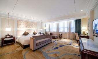 Elegant King Room. High-end Customized Bedding For Comfortable Sleep Smile. Floor-to-ceiling Windows. Massage Chair