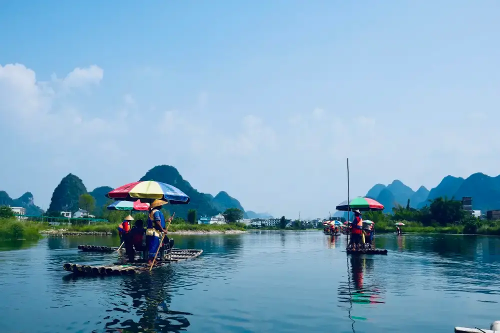 Yulong River Rafting: Glide peacefully on bamboo rafts poled by local boatmen. Passing ancient bridges and villages, watch buffalo wading and egrets skimming water - a serene journey through living ink-wash paintings.