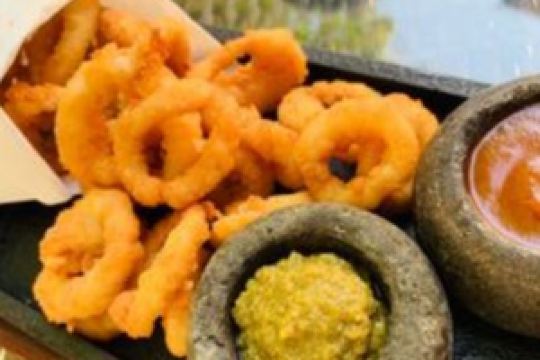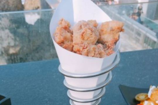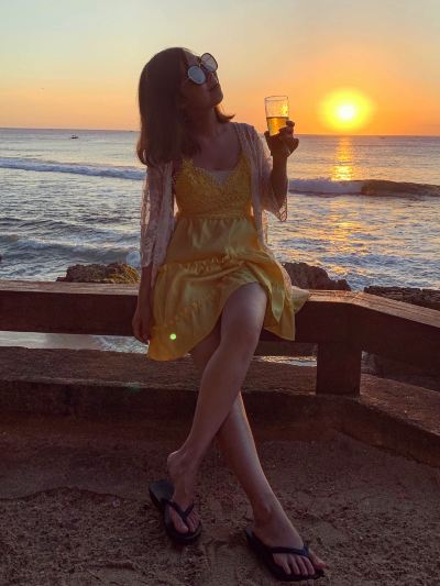 Rock Bar needs no introduction. It is the most popular check-in spot in Bali. It is worth a visit. It opened at 4 o'clock. We arrived when the sun was still very hot. They provided umbrellas. It was around 6 o'clock, just in time to watch the sunset. There were more people. The food was nothing special. It was mainly light meals.