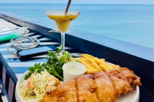 The view is amazing, such a great place to watch the surfers surfing the ocean or enjoy the sunset! We had a meal here which was nice but a bit pricey due to the high beer and drinks prices. The other dishes were about the same price as other restaurants, well worth the meal and view!