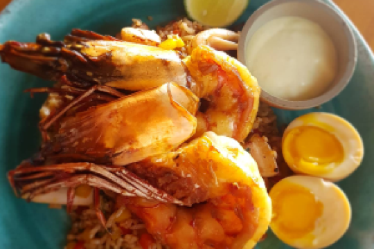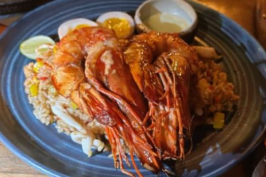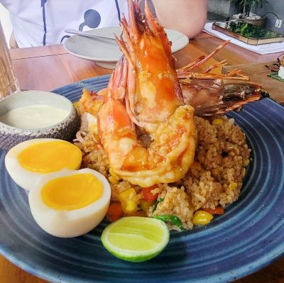 A restaurant with a very Balinese style. The Balinese barbecue inside has a bit of strong spice flavor, the pancake tastes good, the Balinese cold noodles taste good too, with lots of bean sprouts.