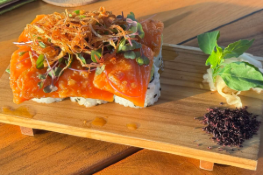 The restaurant is located in Sayan Ubud, with a beautiful view of the forest of Sayan Valley and the Four Seasons Hotel as the background. The food is very special. It is the first time I have tasted the fusion of Japanese and Mexican food. It is very delicious. The taste varies from person to person. My friend doesn't like it, but I think it's okay. The price is a bit expensive.