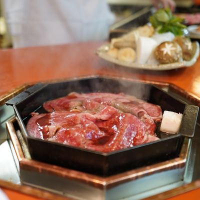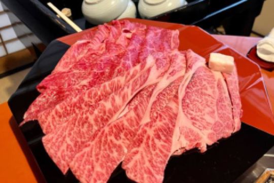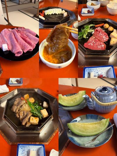 A small private room with a small table in the middle and a cast iron pot on it. After eating the appetizers of tofu and tempura, an aunt in a kimono came in with a large plate of meat. A5 Omi beef, the fat distribution is extremely even and the marbled beef is bright pink, and the appearance of the meat is appetizing. Apply butter to the hot pan, pour some cut (sushi sauce), and the aunt picks up the first piece of meat and puts it into the pan. Unexpectedly, the meat is bigger than the pan, and my friends and I were dumbfounded (ΩДΩ). The first piece of meat is only dipped in egg liquid, and the even fat is soaked in the aroma of soy sauce and a little sweetness after frying, making it soft, smooth and tender. You won't feel greasy even if you eat a whole piece, which is very satisfying. Next, when the sukiyaki sauce is bubbling, add tofu, konjac shreds and green onions to fry. After the vegetables are cooked, add the second piece of meat, wait until the meat changes color due to overcooking, and serve it in a bowl with the vegetables. For the second bowl, fill the tender meat with the sweetness of green onions. In the third round, onions and enoki mushrooms are put into the pot first, followed by meat and spring chrysanthemum (similar to mugwort stalks). After the ingredients are cooked, they are served in a bowl. The last main course is the store's special zasui, with sukiyaki sauce as the base, rice added and egg liquid poured over it.