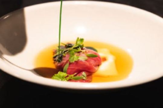 This restaurant offers high-end French cuisine with a Japanese twist – no surprise, it has two Michelin stars. The dinner menu consists of 11 small courses. The flavors of shiitake mushrooms, cheese, truffle shavings, beef and ayu fish stand out. The whole course is well-balanced. The waiter recommends the wine pairing, which is priced at 13,000 yen, as it includes some high-end wines such as L. Boillot Nuits Saint Georges, Comte d’angerville Meursault, and a great sake, as well as an excellent Sauvignon blanc from Nagano. The restaurant itself is very comfortable, with seating at tables surrounding the open kitchen in the center.