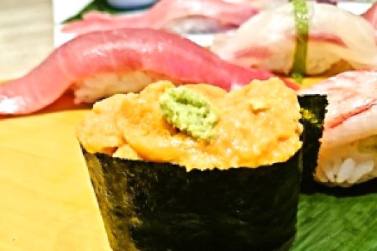 I searched online for this popular restaurant. It is said that the queue is several hours. But I was lucky that day. I got a seat at the bar within two minutes after I got the number: it was just what I wanted. The chef was making it in front of me. It is very popular. There are many locals. Some of them come with suitcases. Some pass by and take away. Some people ask for something else to take away after eating. It shows that its quality is really good. There is a menu on the table. When you think about it, signal the chef at the bar. He will stop what he is doing and take your order with a small machine. Then he will be responsible for making the sushi. The drinks and other things will be brought by the waiter. When you check out, you also need to ask the chef for the bill and then go to the door to pay. This chef is in charge of several seats in front of him. When we were dining, there were 5 groups of guests. His work efficiency is also very good, which is equivalent to two. He moved quickly. After I finished observing the store, a small plate of sushi came in front of me. The huge fish completely covered the rice below. I chose a tuna for the first bite. OMG, the fish slices melted in the mouth, and the rice was chewy and fragrant. It was so delicious! I ordered a seasonal platter, which was very rich. I tried every bite and they were all very good. The platter picture shows one plate, but in fact, three plates were served. I also ordered a salmon, a tuna, and a crab salad (I suggest not to order this because it is large and salty and it is included in the set meal). These are all in the set meal, so in the end I ordered too much and was full. The price is great value, and the final checkout number is very auspicious: 6688. Perfect sushi experience.