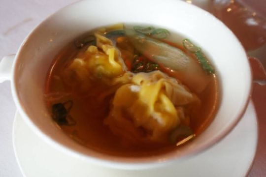 The Peking duck was served whole on a beautifully presented rack, then sliced at the table; it was quite delicious. The other Cantonese dishes were also pretty good.