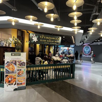 The restaurant is located on the main road behind Siam Square. It serves traditional Thai food. The shrimp cakes are not tasty. There is no shrimp flavor at all. It feels like noodles. The mango sticky rice is OK. The Tom Yum Goong soup tastes very good and is spicy. The spicy minced pork is really spicy. Be careful about the taste. Overall, it's average, but the location is good.