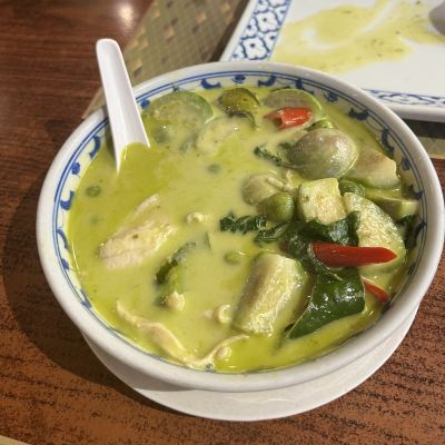 Very authentic Thai restaurant, the red curry prawns are very good and very cheap, the pineapple rice is very filling, but there is not enough rice, so I ordered two servings, and there is pork neck, but it is not hot, which minus points.