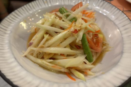This restaurant is located on the fifth floor of Terminal 21 Shopping Mall. It is a pure Thai restaurant. Every time I pass by it, there is a long queue, which shows how popular it is. There are certifications from various travel websites posted at the door of the store, which makes people want to try it. Charcoal grilled pork neck, slightly spicy, but the rich and oily feeling makes people unable to stop. The fried chicken wings are a bit dry, but with their sauce, they are sweet and crispy. Fried water spinach, each family has a different way of making it, and each family has a different taste. Theirs is slightly spicy and tastes average. Stinky fish, crab and green papaya salad looks very filling, but the taste is a bit hard to describe. It is hard to say whether it is delicious or not.