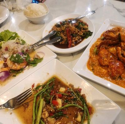 I don't really recommend Jian Xing Restaurant. It's crowded and requires a long line, the prices are high, and the food isn't particularly delicious. But since it's close, I went anyway (I was really lazy). It's on the fourth floor of Siam Square. I ordered curry crab, raw shrimp with fish sauce, stir-fried water spinach, and coconut pudding, and it cost 1589 baht.