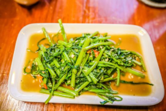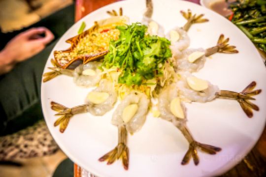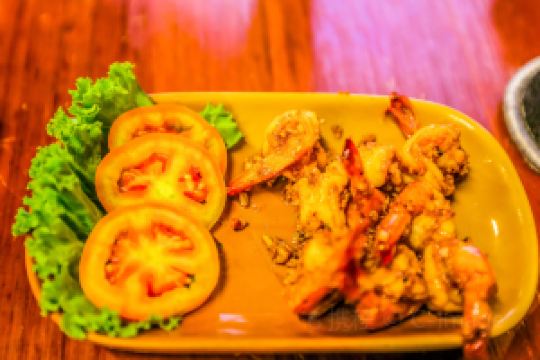 This restaurant is right by the sea. It seems that many people recommend it, so it is quite popular, especially during meal time. You can buy some deep-fried seafood and ask them to cook it for you. There are also many fruit stalls next to it.
