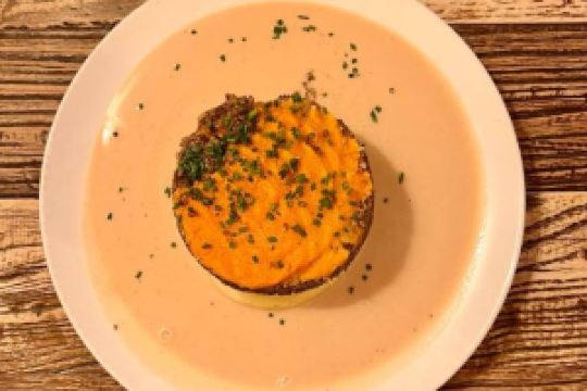 I searched the rankings and found this one ranked very high. I followed the navigation and came here. There were a lot of customers during lunch time. I waited for a long time and the waiter was a little overwhelmed. The store is not big and it will be a little crowded when it is full of customers. I chose the popular haggis, which is very large and tastes pretty good. The top layer is pumpkin puree, the middle is vegetarian haggis, and the bottom layer is mashed potatoes. The scotch egg is also very delicious and I ate it as soon as it came. This store is worth recommending.