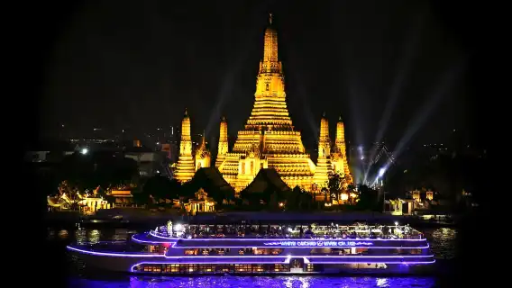 Take a cruise along the Chao Phraya on the White Orchid River Cruise Liner and enjoy a delectable dinner buffet with a variety of local and international dishes, accompanied by unlimited beer.