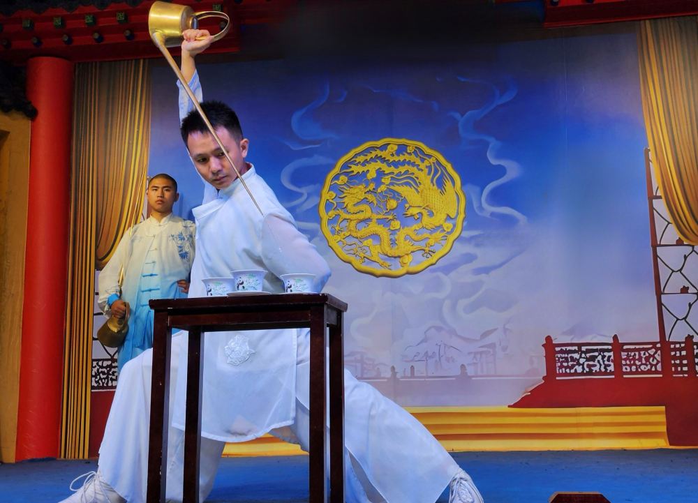 - This is a distinctive Sichuan tea ceremony performance that combines martial arts and dance elements, elevating tea-pouring skills into an art form. It showcases the agility and mastery of Bashu tea culture, often serving as a complementary cultural display during Sichuan opera performances.