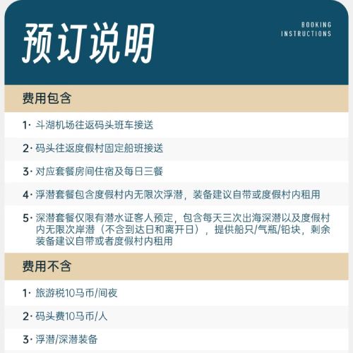 Diving packages are only available for guests with a diving certificate, including three boat dives per day and unlimited shore dives within the resort (excluding arrival and departure days). Boats, tanks, and weights are provided. It is recommended to bring your own remaining equipment or rent it at the resort.