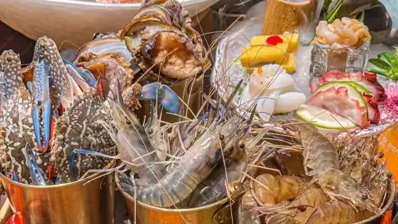 The variety is abundant, featuring premium seafood like king crab and Boston lobster, along with a diverse selection of vegetables, fruits, desserts, and beverages. With mostly mid-to-high-end options, you can enjoy unlimited dining here.
