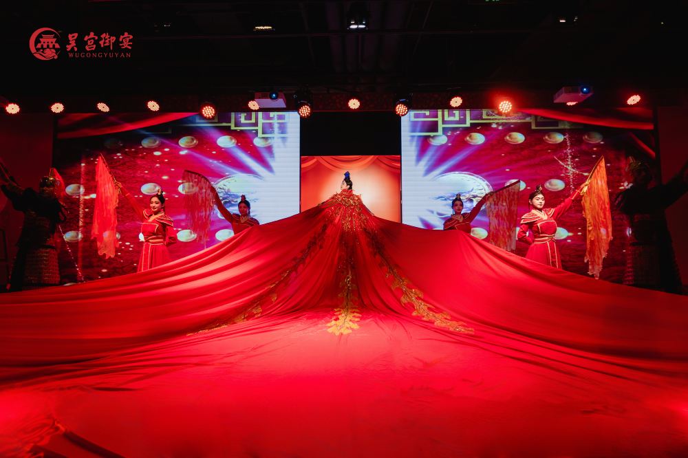 Wugong Imperial Banquet is located on the first floor of the Wugong Imperial Banquet Hotel within the 4A-rated Panmen Attraction in Suzhou. Once serving as the Wu Kingdom's posthouse, it now replicates the design of the Wu palace from the Spring and Autumn period, with city walls built from Suzhou's Jinshan stone, exuding grandeur. The banquet venue features 11 themed spaces, including the Costume and Makeup Department, Wu Kingdom Bank, and Imperial Archery. Here, you can don ancient attire, receive exquisite makeup styling, and transform into nobility, commoners, or reclusive scholars of antiquity. Immerse yourself in activities like archery, traditional games, and literary gatherings for an authentic experience of ancient life.