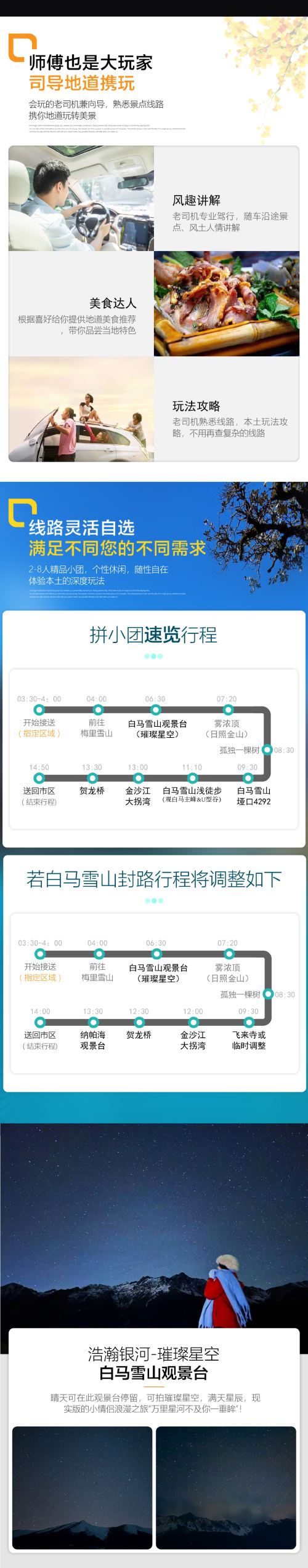 1. The specific departure time and pickup location will be confirmed by the driver. Due to restrictions in the ancient town where motor vehicles are not allowed to enter, the driver will arrange to pick you up at the nearest convenient parking exit of the ancient town. We appreciate your understanding for any inconvenience caused.