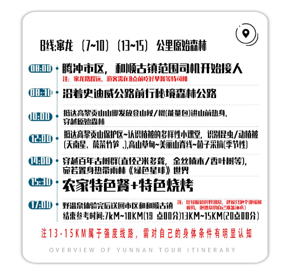 No shopping stops, door-to-door pickup, Gaoligong Mountains National Park, outdoor hot springs, barbecue party