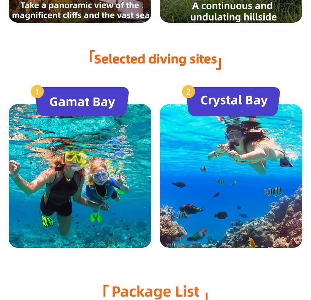 [Popular Tourist Spots and Snorkeling Equipment] Fairy Cliff, Heavenly Crack, Heavenly Bathing Pool, Diamond Beach, Popular Treehouse