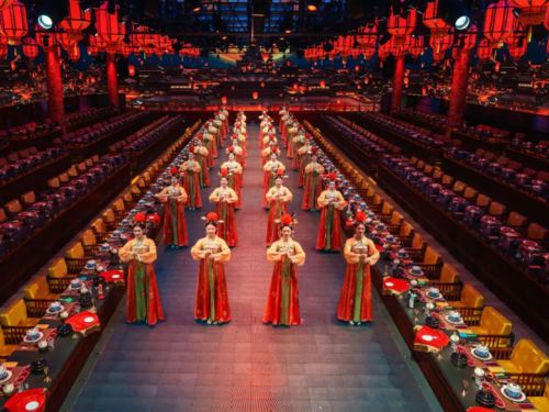- Yuxiandu is not just a restaurant, but more like a miniature museum of Qing Dynasty court culture, where visitors can explore and learn about Qing history, perfectly blending the essence of history and cuisine. Upon entering, you'll be captivated by the elegant and antique decor—pavilions, towers, carved beams, and painted rafters—each detail exuding imperial refinement. The restaurant also features a small museum area displaying replicas of Qing Dynasty court artifacts, costumes, and utensils, allowing guests to savor exquisite dishes while immersing themselves in the splendor of that glorious era.