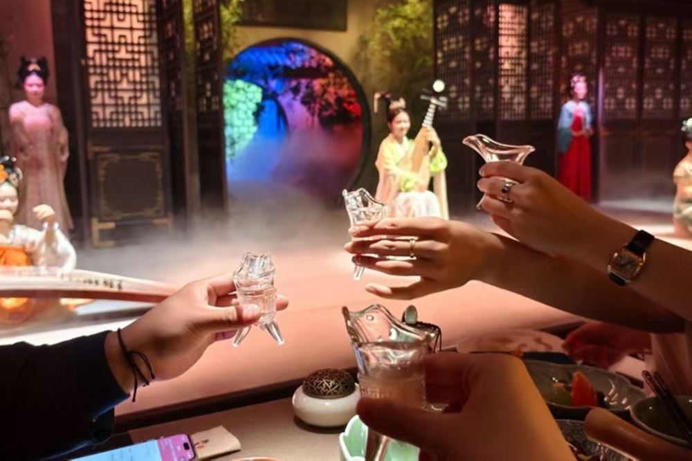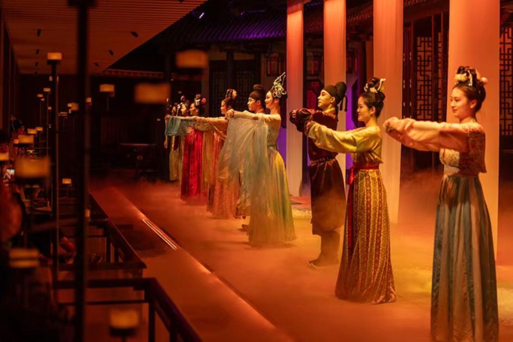 - The exquisite delicacies are prepared following ancient recipes, with each gourmet dish accompanied by West Lake legends, served by attendants who present the courses with traditional rituals. Guests can change into splendid attire, enjoy imperial music resonating through the halls, and immerse themselves in royal banquet scenes with elegant performances and interactive arrow-pitching games.