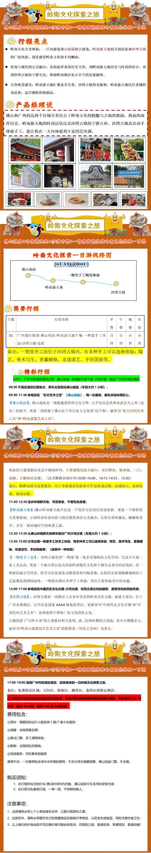 Panoramic Lingnan cultural experience: In one day, explore the ancient architecture of Foshan Zumiao, the cultural and creative revitalization of Lingnan Xintiandi, and the Cantonese charm of Shawan Ancient Town, deeply immersing yourself in Lingnan culture.
