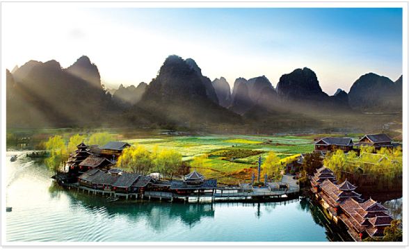 Pick-up area for Yangshuo guests: Yangshuo Gas Station - Shima Roundabout - Qinghuali Hotel.