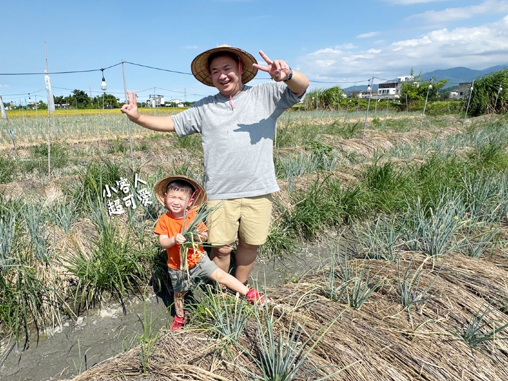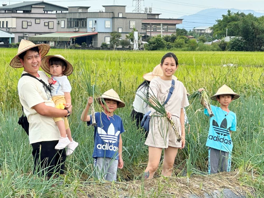 ▲Everyone wore bamboo hats to harvest scallions in the field—it was a first-time experience for all.