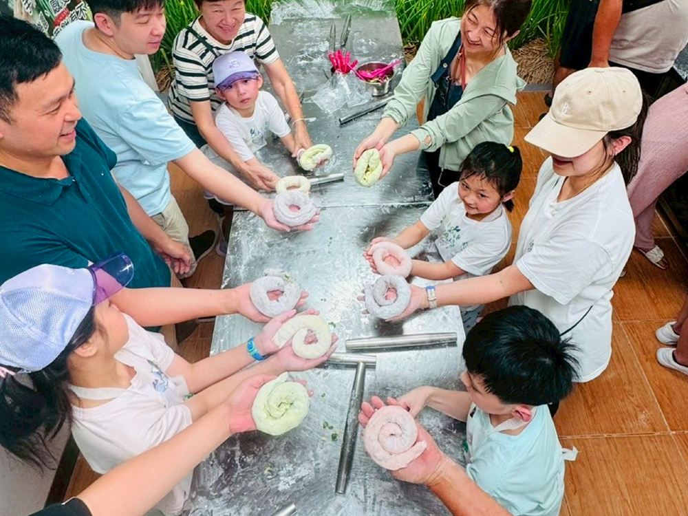 ▲From rolling the dough to sprinkling scallions to shaping, everyone is so focused because soon we'll get to enjoy delicious scallion pancakes!